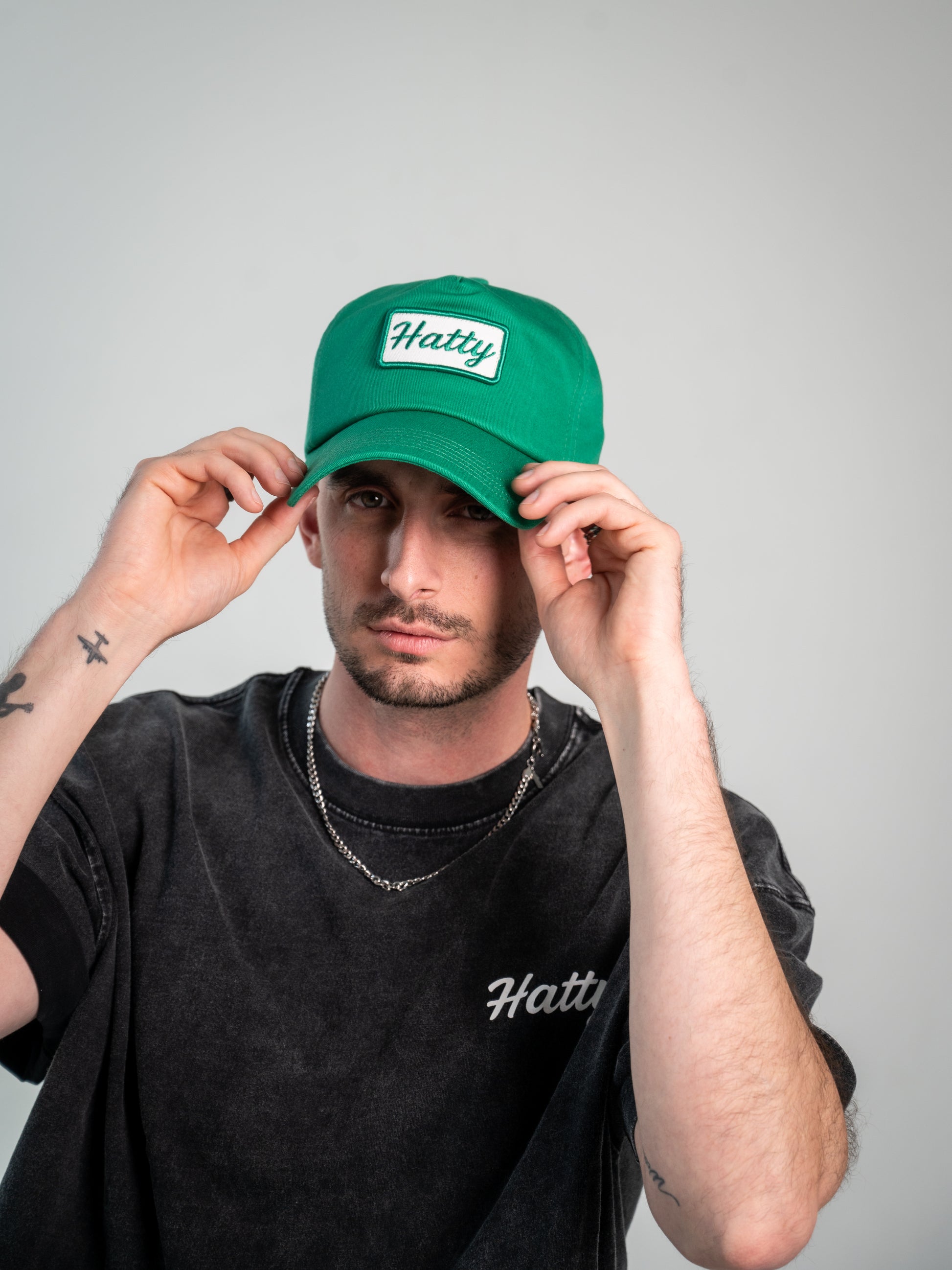 This is your go-to for sunny afternoon, road trips, and good vibes. The Evergreen unstructured hat features the classic five-panel design in a bold green, finished with our signature Hatty patch.